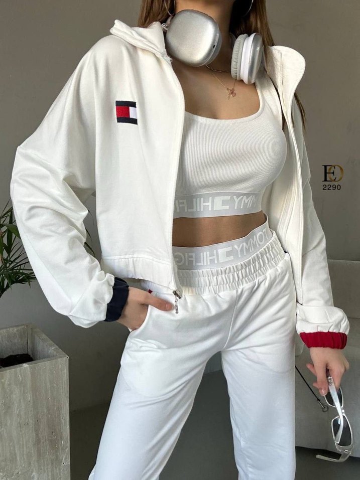 Beyaz Mini Kemerli Kadın Eşofman Takımı