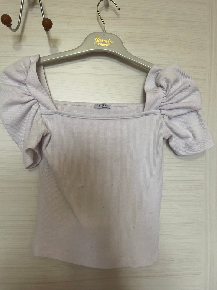 Bu beyaz keten bluz, vual yaka ve kısa fırfırlı kollara sahiptir. Mini boyu ve sade tasarımıyla günlük rahat sokak stili için uygundur. Marka: Yamin.
