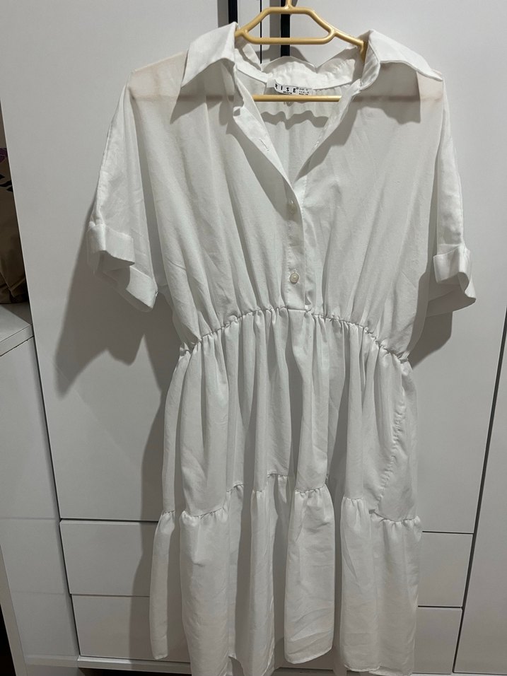 Beyaz mini keten elbise, bol kesim. Astarsız