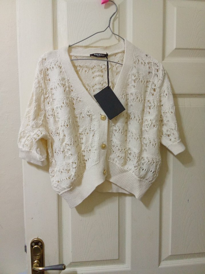 Beyaz Mini Örgü Kadın Hırka BALMAİN