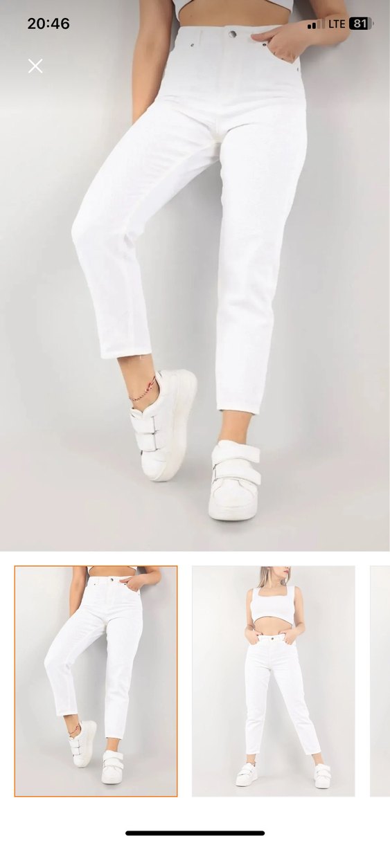 Beyaz mini uzunlukta, pamuk kumaştan yapılmış, regular fit kadın jean. Günlük sokak stili için zahmetsiz şıklık sunar.