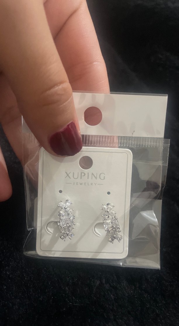 Beyaz mini küpeler, payet detaylı ve baskılı desenlidir. Kısa boyda, minimal ve rock punk tarzını yansıtan düğün için uygun küpelerdir. Marka: Xuping Jewelry.