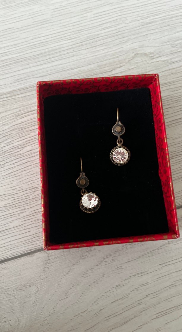 Beyaz payet detaylı, renkli desenli vintage tarzında kısa uzunlukta mini küpeler. Romantik akşamlar için uygun. Güzel sayılı kullandım