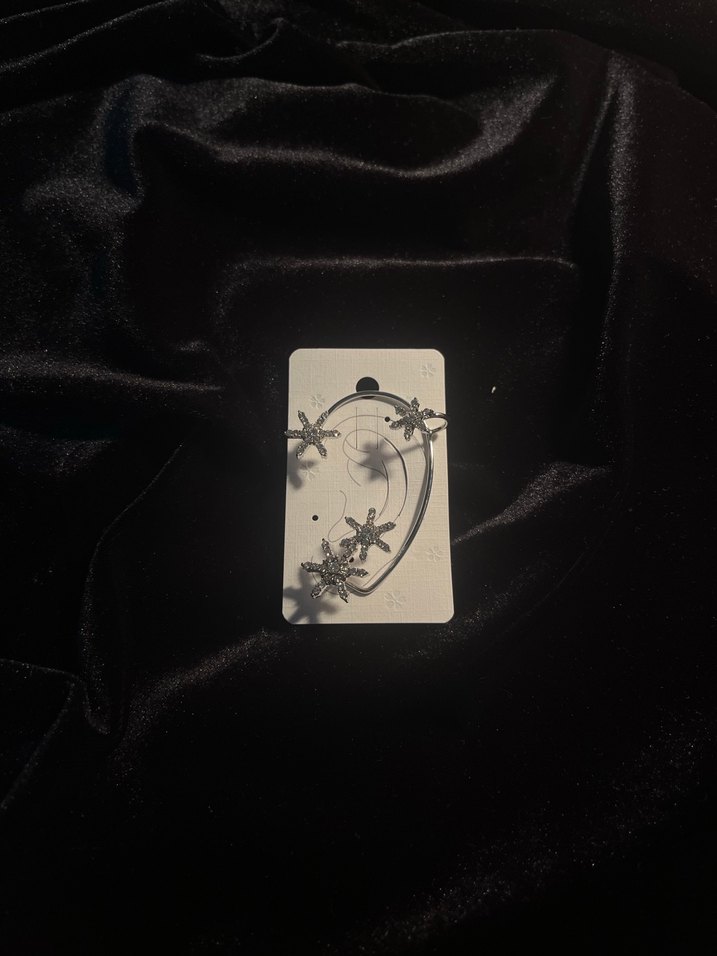 Beyaz mini boyda, pul işlemeli denizyıldızı detaylı gotik tarzda küpe. Günlük kullanıma uygun kısa boyda ve baskılı desene sahip. ✨
