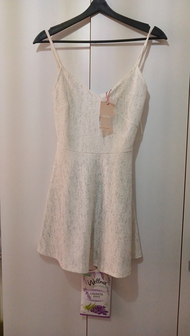 beyaz mini simli elbise