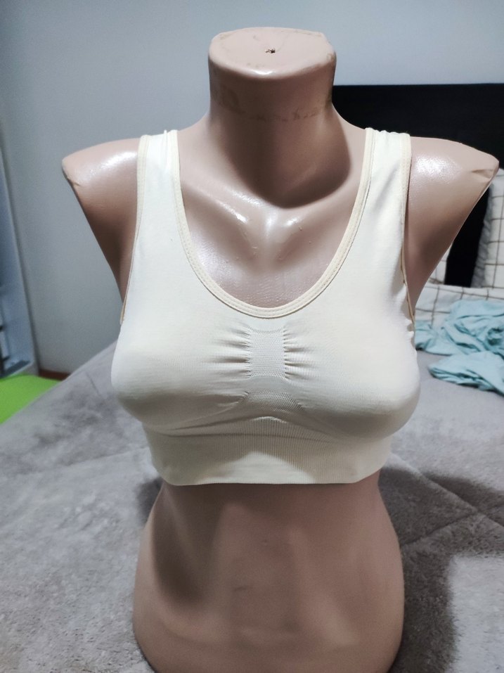 Sade tasarımlı, kısa kesim beyaz mini spor sütyeni. Sokak stili için uygun ve rahat bir yapıya sahip. ️♀️