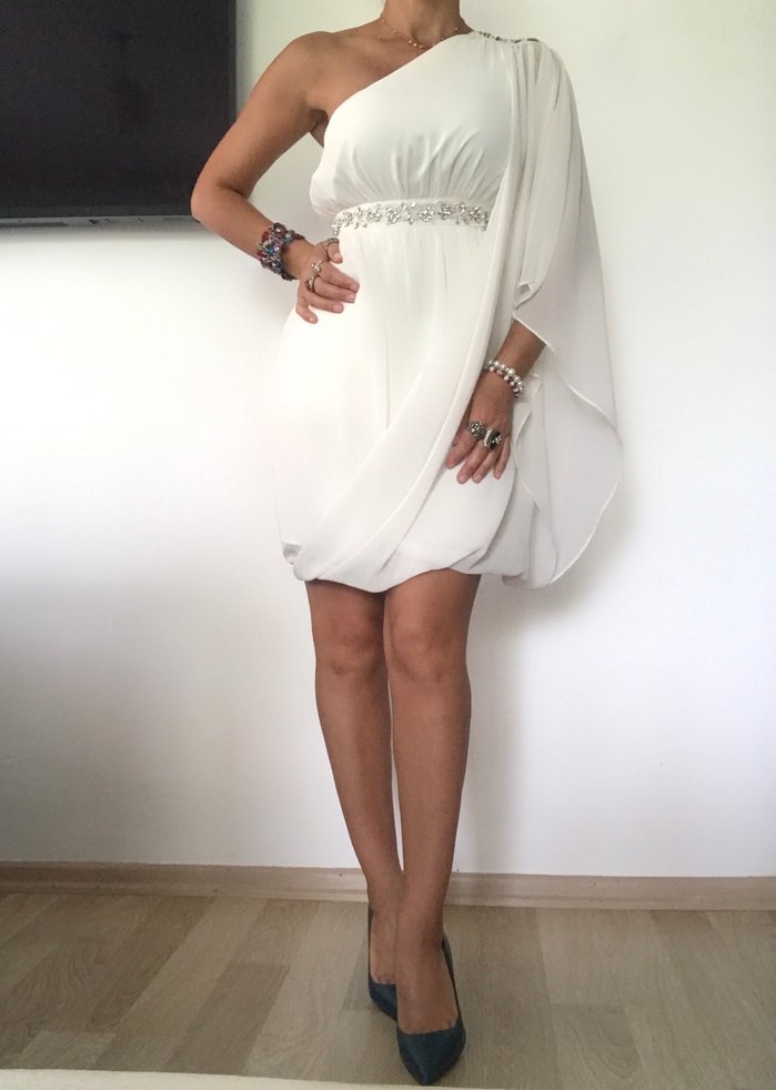 Beyaz Mini Tek Omuzlu Abiye