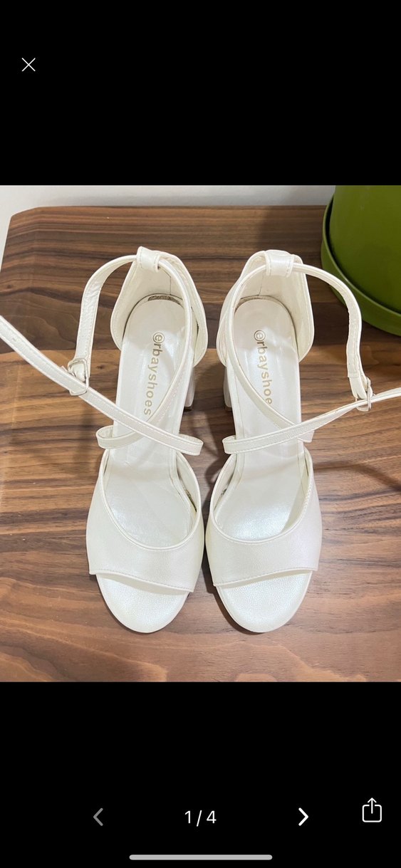Beyaz renkli, blok topuklu kadın abiye ayakkabılar, minimal ve modern klasik tasarıma sahiptir. Kauçuk malzemeden üretilmiş, sade ve şık bir görünüme sahiptir.