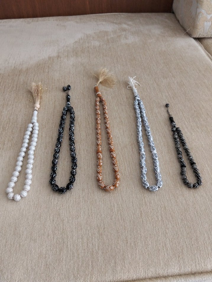 Beyaz minimalist erkek tesbih, sade bohem tarzıyla koyu detaylara sahip. Günlük kullanım için uygun. ️33 TANELİ 5 ADET TESBİH. HEPSİ 33'LÜDÜR. PLASTİKTEN YAPILMIŞ VE ÜZERİ BOYA İLE DESEN VERİLMİŞ. SEÇENEKLERDE PLASTİK OLMADIĞI İÇİN AĞAÇ SEÇİLMİŞTİR. EN SON FOTODAKİ TESBİHİN İPİ MİSİNEDİR. DİĞERLERİ NORMAL İPTİR.