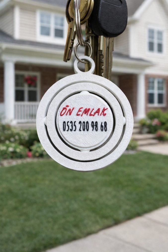 Beyaz ve kırmızı Siyah Yada Sizin Seçeceğimiz Renkler İle detaylı, çağdaş tasarımlı mini anahtarlık. Üzerinde "firmanızın ismi " ve telefon numarası yer alır.