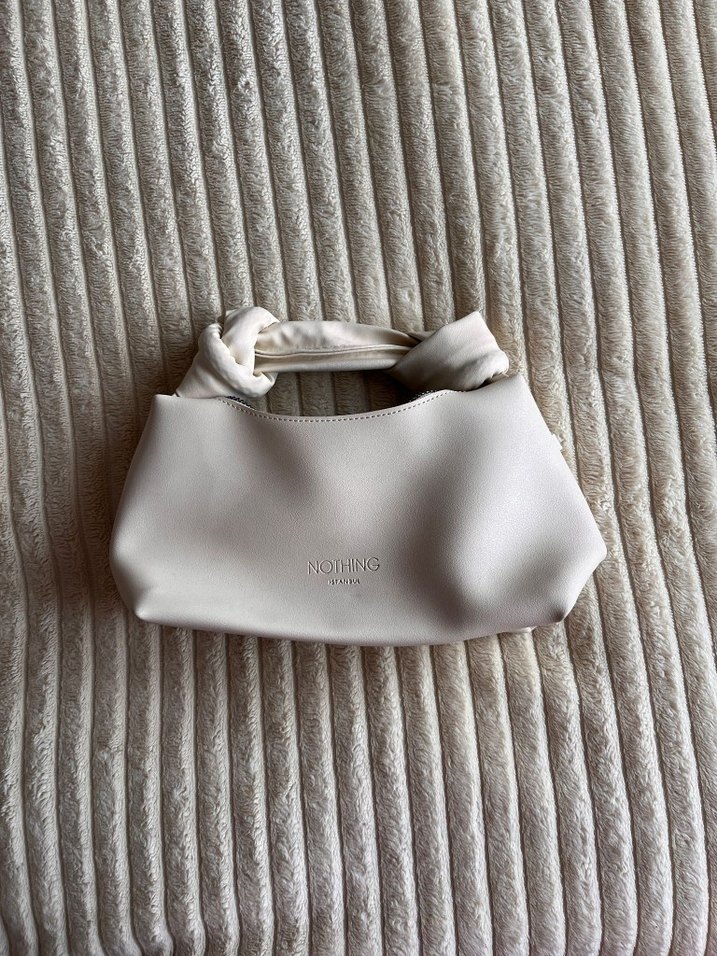 Beyaz renkte, yumuşak sentetik kumaştan minimal tasarımlı kadın çantası. Düz ve desensiz yüzeyi günlük kullanımda zahmetsiz şıklık sunar.