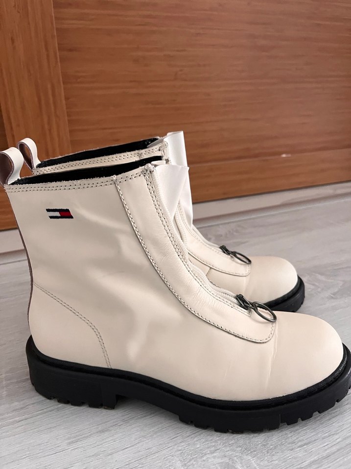Beyaz deri botlar, blok topuk ve tokalı detaylara sahip. Pastel tonları ve minimal tasarımıyla günlük şıklık için uygun. (Yurtdışından alınmıştır. Ayağım taraklı olduğu için biraz acıtıyor. 38 ya da 38.5 giyen birinin alması daha mantıklıdır bence.)