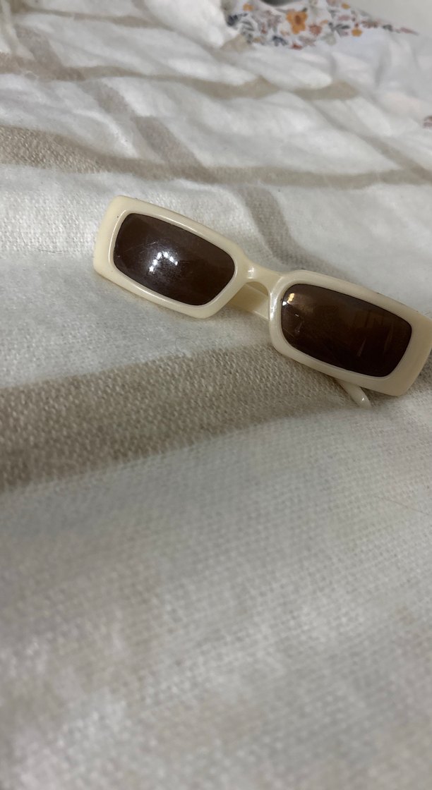 Dikdörtgen koyu camlı beyaz minimalist kadın güneş gözlüğü, zahmetsiz şıklık sunar. Sade ve temel tarz için uygundur.
