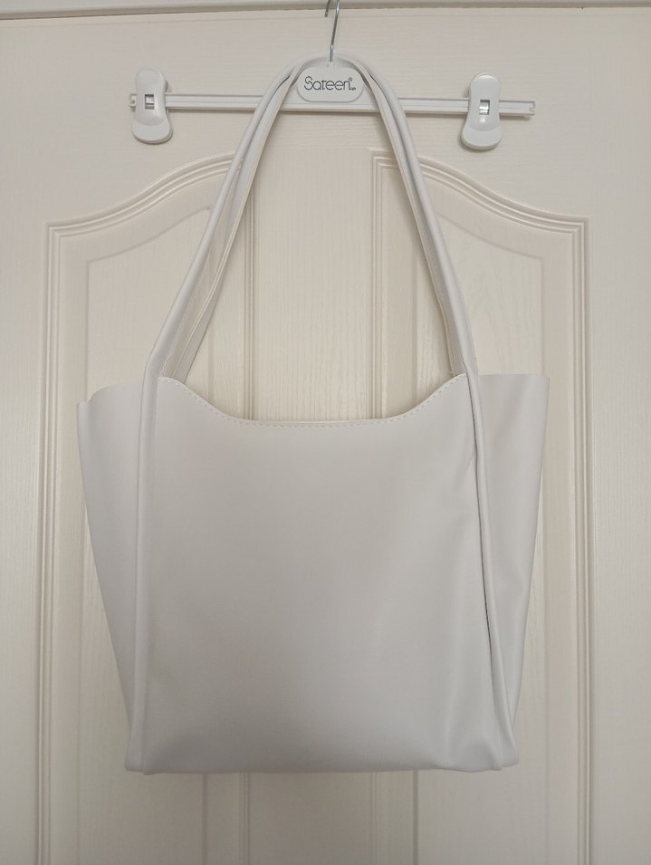 Beyaz renkte, düz desensiz, sentetik kumaştan minimalist kadın omuz çantasıdır. Günlük kullanıma uygun, sade ve şık bir tasarıma sahiptir.