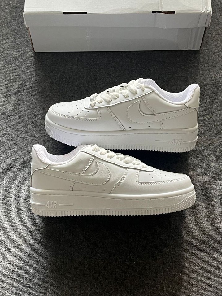 Beyaz, minimalist tasarımlı kadın sneakers. Kauçuk malzemeden, stilettolu topuklu, günlük sokak stili için şık ve sade bir görünüm sunar. Desensiz ve açık renklidir. Nike Air Force Kutulu gönderim ✨️ mevcut numaralar 37 39 Almadan önce ilan açtırınız