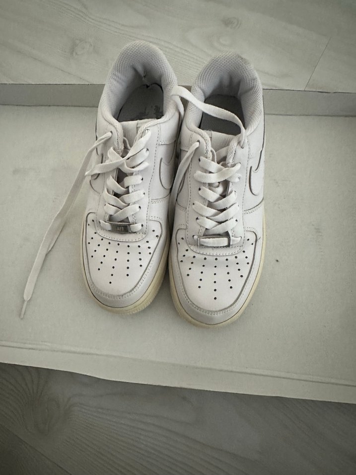 Beyaz, minimalist tasarımlı kadın spor ayakkabısı. Kauçuk malzemeden ve ince topuklu, günlük sokak stiline uygun rahat bir model.