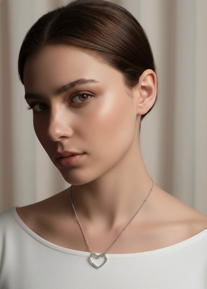 Beyaz Minimalist Kalp Kolye