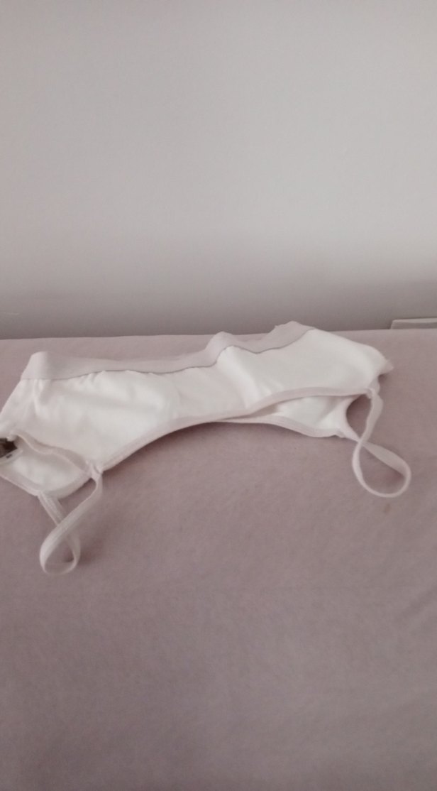 Beyaz minimalist, desen içermeyen, normal uzunlukta midi sütyen. İnce askılı ve rahat bir kumaştan üretilmiştir.