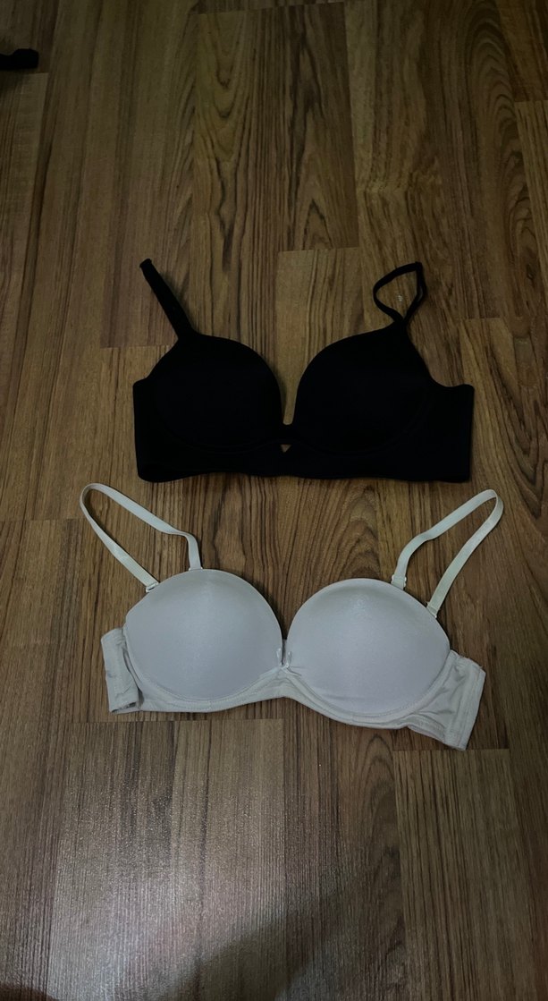 Beyaz minimalist, desensiz, normal uzunlukta askılı sütyen, sade ve şık bir tarz sunar.