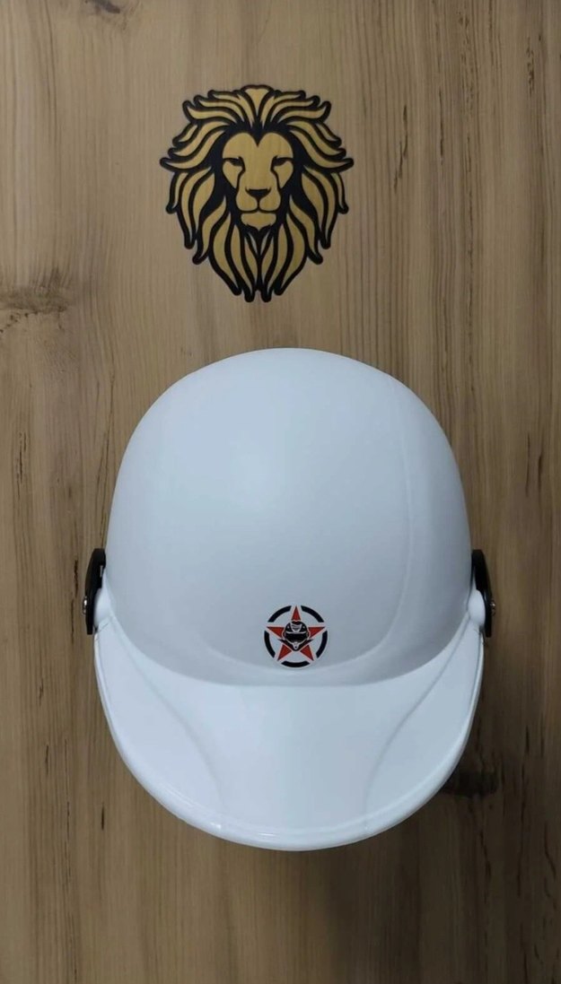 Dayanıklı plastikten yapılmış, önünde sade bir yıldız amblemi bulunan beyaz minimalist motosiklet kaskı. ️