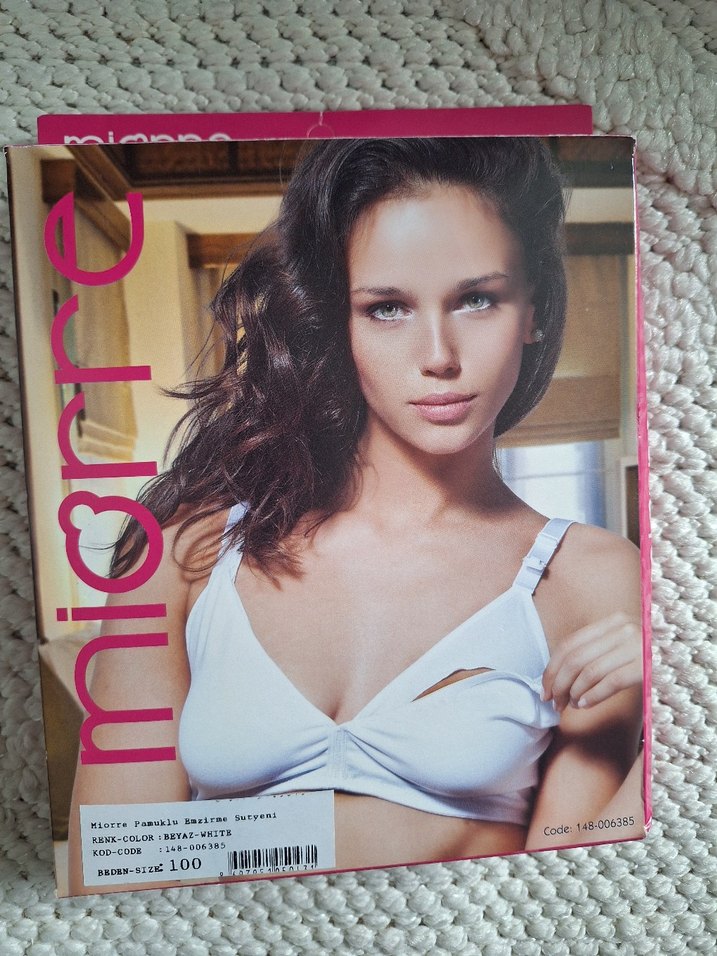 Beyaz renkte, minimalist normcore tarzda, baskılı desenli ve normal boyda rahat bir sütyen.