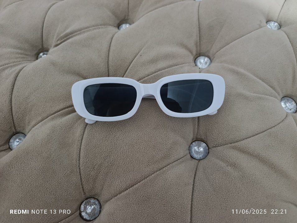 Beyaz, transparan çerçeveli, dikdörtgen şekilli minimalist kadın güneş gözlüğü, sokak stili ve retro bohem tarzına uygun. ️Hiç kullanmadım