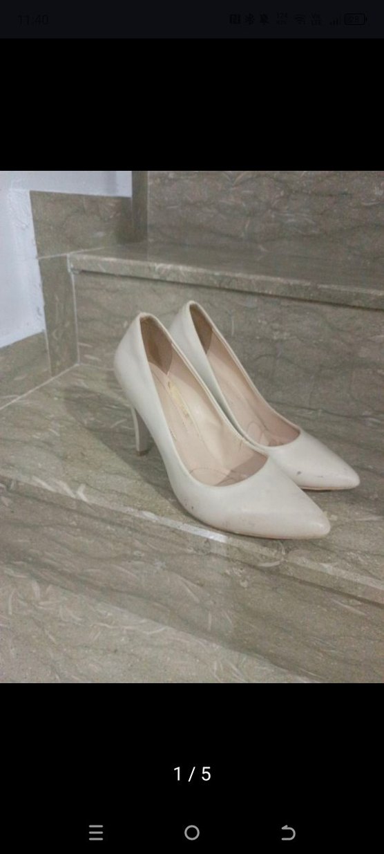 Beyaz stiletto topuklu ayakkabılar, desen içermeyen şık ve modern klasik bir tasarıma sahiptir. Kauçuk malzemeden yapılmış olup düğünler için zahmetsiz şıklık sunar.