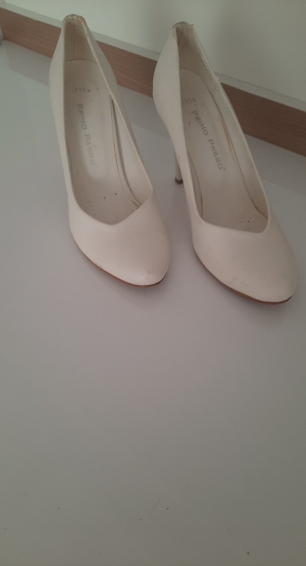 Beyaz renkli, lastik malzemeden yapılmış stiletto topuklu ayakkabılar. Minimalist ve modern klasik tasarıma sahip, düğünler için uygun, zahmetsiz şıklık sunar.