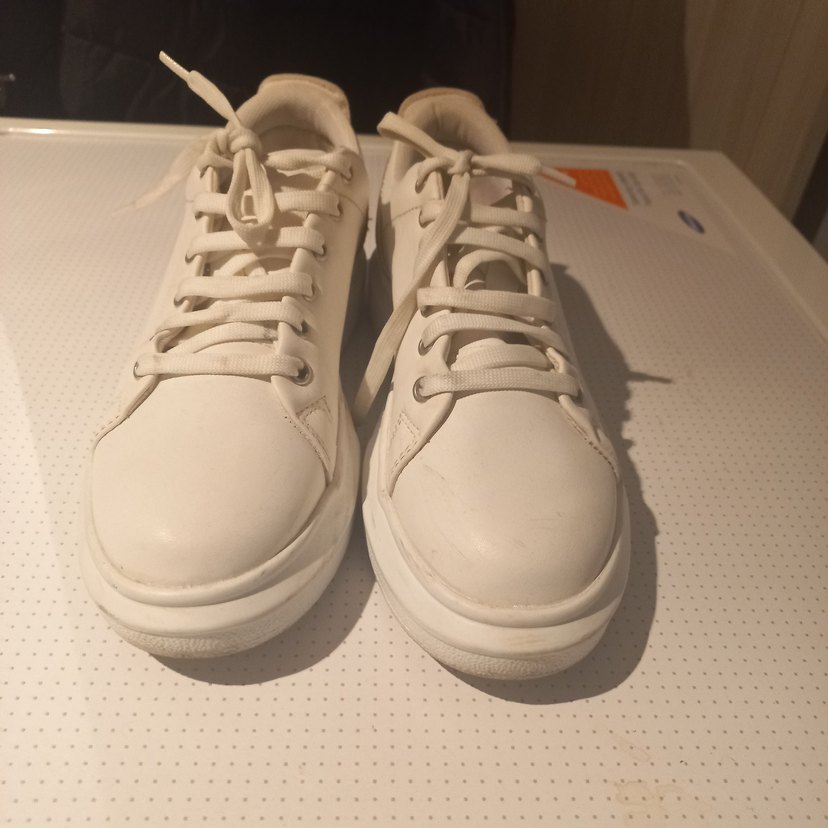 Beyaz renkli, minimalist tasarımlı kadın spor ayakkabısı. Stiletto topuklu ve kauçuk tabanlı, günlük kullanıma uygun sokak tarzı spor ayakkabı.