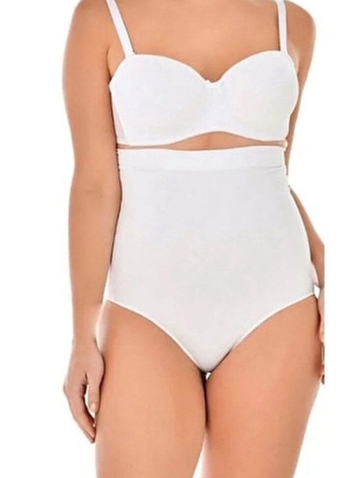 Beyaz, minimalist ve çağdaş tasarıma sahip yüksek bel kadın külot. Normal boyda, desen içermeyen hafif kumaştan üretilmiştir.