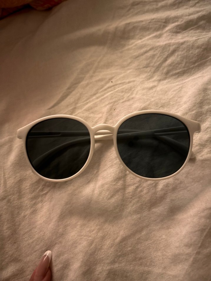 Gri camlı beyaz minimalist yuvarlak güneş gözlüğü, sokak stiline uyumlu zahmetsiz şıklık sunar.