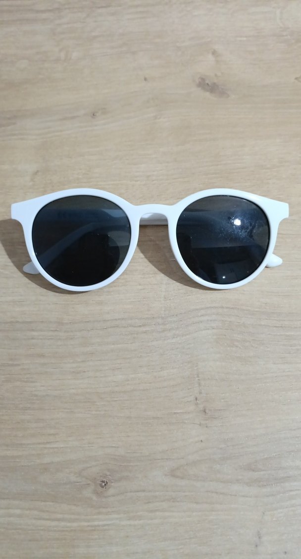 Minimalist tasarımlı beyaz yuvarlak kadın güneş gözlüğü, gri camları ile zahmetsiz şıklık sunar.