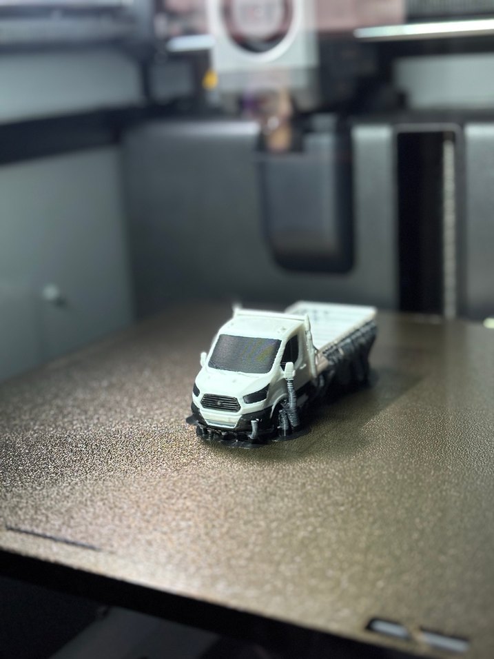 Detaylı tasarıma sahip beyaz ve gri minyatür oyuncak kamyonet. Koleksiyon veya oyun için uygun.