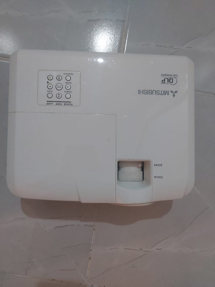 Zoom ve odak ayarlarına sahip beyaz Mitsubishi DLP projektör, net görüntü yansıtma için uygundur.