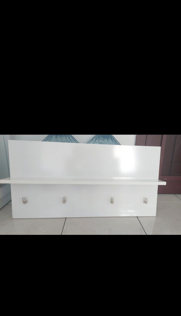 Beyaz renkte, tek raflı ve dört askı aparatı bulunan vestiyer kullanımına uygun Askılık, 40, 78, raf genişliği 10