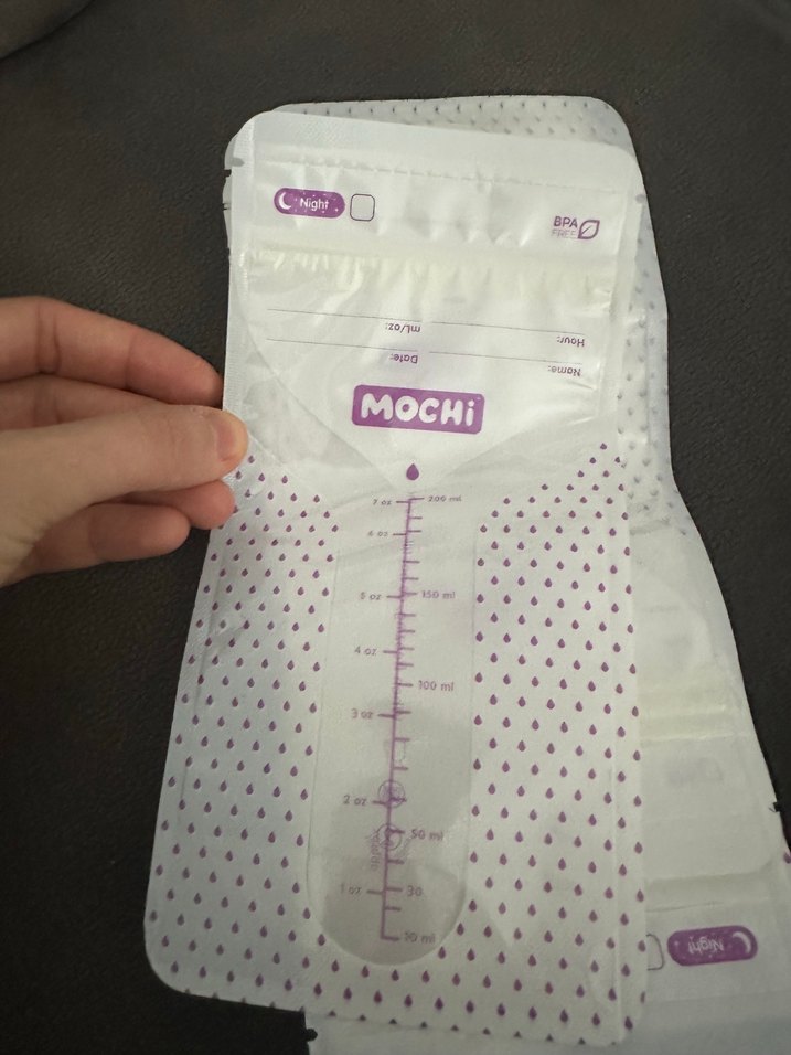 Ölçü işaretli, BPA içermeyen beyaz MOCHI süt saklama poşeti. Hijyenik süt muhafazası için uygundur. 15 adet