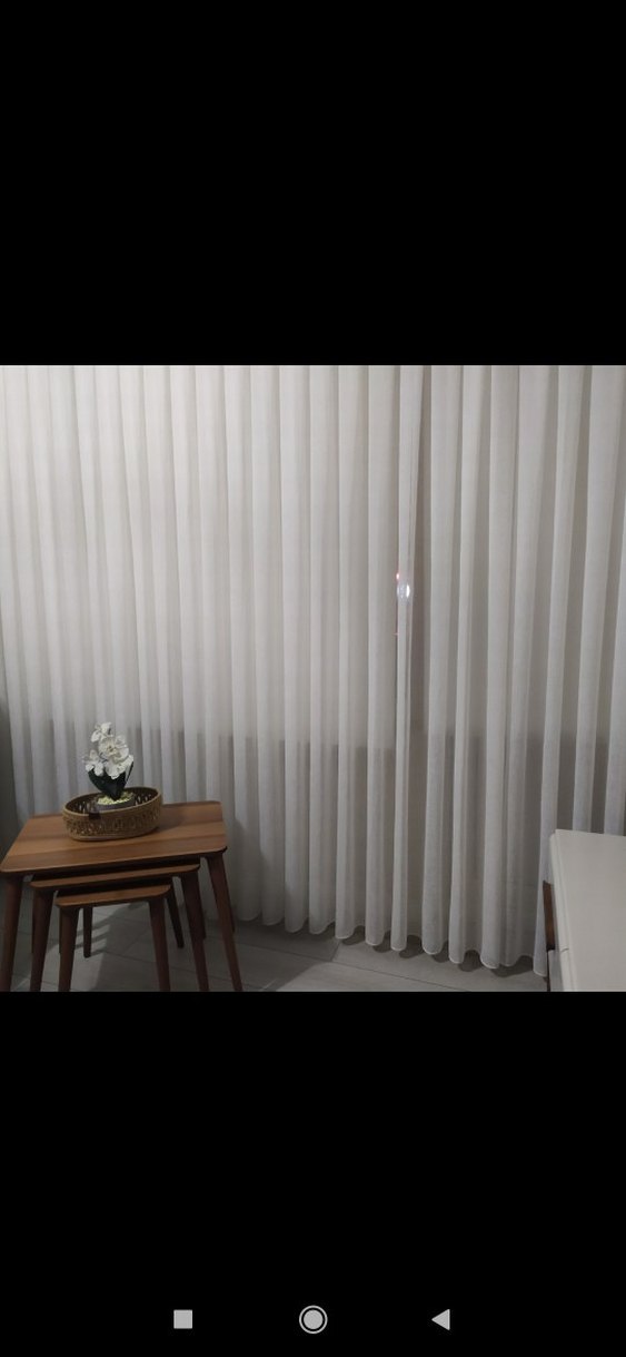 Beyaz modern desensiz tül perde, ışığı yumuşakça süzen sade bir tasarıma sahiptir. Temiz ve minimal bir görünüm sağlar.