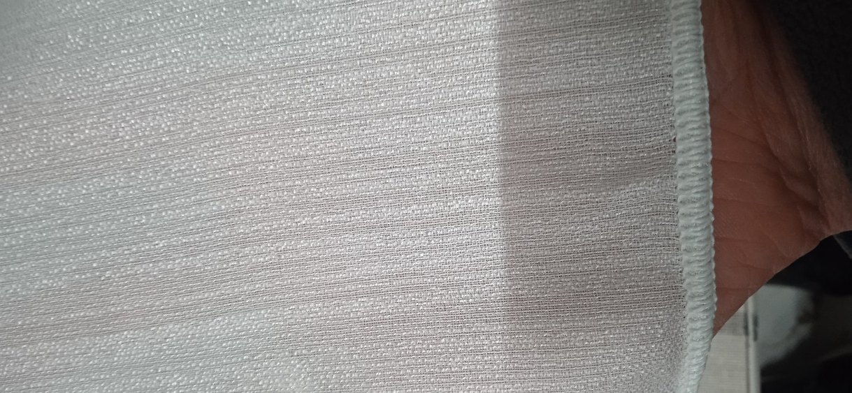 beyaz renginde, desen içermeyen, hafif dokulu modern tarzda perde. en 3,50 boy 2 55