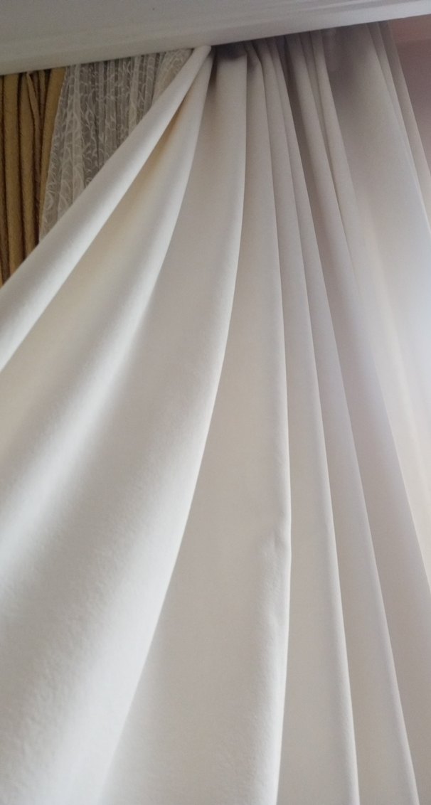 Beyaz, desensiz ve modern tarzda, hafif ve ferah bir his veren perdeler. eni 2,5 boy 2 m içinde 10 cm payı var krem özel dikim kalın fonluk kumaştan yapıldı.