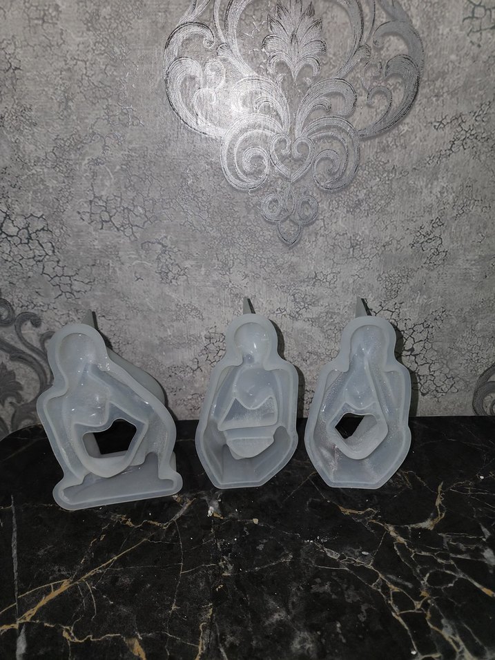 Üç farklı oturma pozunda modern ve soyut figürlerden oluşan set. mum taş silikon kalıbı