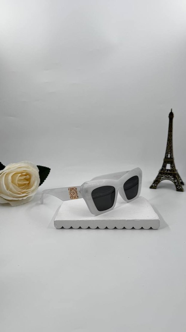 Gri camlı beyaz kadın güneş gözlüğü, modern klasik tasarıma sahip, zahmetsiz şıklık sunar. Minimalist ve zarif bir görünüm sağlar. ️ Loewe Marka Gözlük Gözlük+Kılıf+Bez 3.Seviye Güneş Işığı Süzme Kapasitesi AB Optik ve Güneş Gözlükleri Standartlarına Uygun