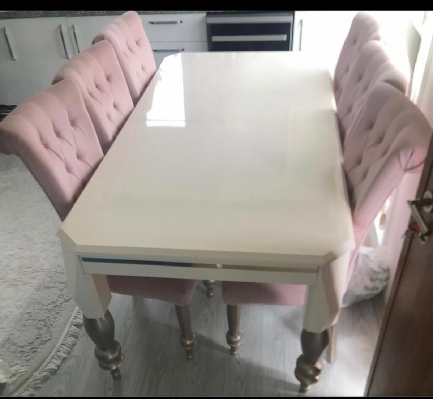 Avangarde yemek masası ölçüleri Boyu 2metre Eni 100cm Masanın açılmış boyu 2.35 dir ,Ayakları gold desenlidlr 6adet çok kullanışlı koltuk gibi rahat geniş sandalyeleri vardır açılır masadır açılması çok basittir geniş salonlar için şık kullanışlı masadır ömürlüktür yer darlığından satıyorum ayrıca organizasyon evleri için de uygundur Fiyatı 20.000 Orhangazi