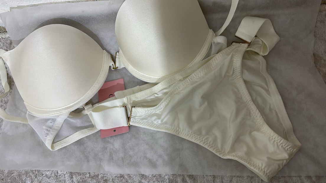 Beyaz, modern klasik tarzda, Parisian esintili, düzgün dokulu ve hafif kumaştan yapılmış sütyen. Orta uzunlukta tasarım sunar. ✨