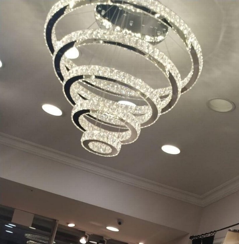 Bu beyaz modern LED avize, spiral tasarımı ve parlak ışık elemanlarıyla aydınlık ve şık bir ortam sağlar. Kumandalı Üç renk led (beyaz, gün ışığı, sarı) yanabilen, 90 cm çap kristal avize