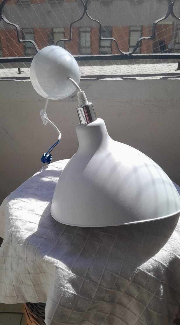 Beyaz renkte, metal detaylı modern tasarıma sahip sarkıt lamba. Ayarlanabilir kablo ile kullanılır. az kullanıldı. elimde 3 adet var .