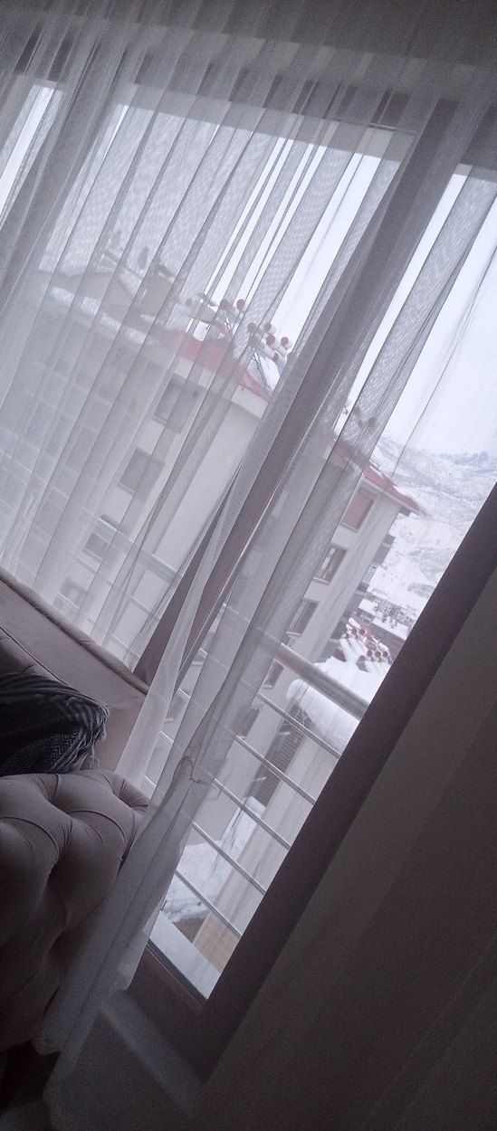 Beyaz tonlarda, hafif ve şeffaf görünüme sahip modern tül perde. 2.75 en 2.43 boy