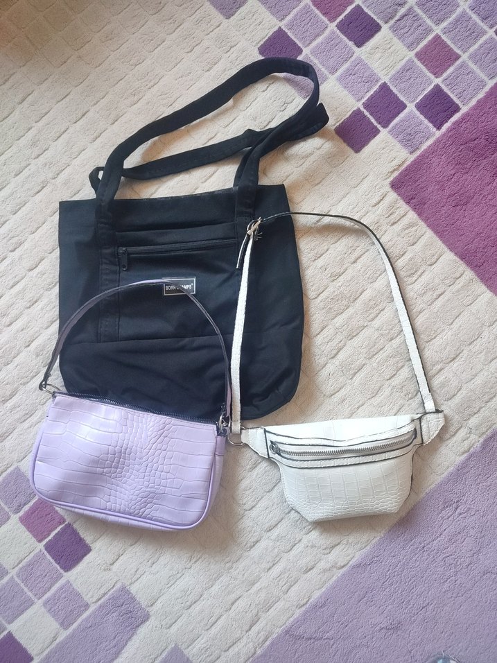 3 adet fiyatıdır. Beyaz ve mor çanta yeni gibi hiçbir sorunu yoktur. Siyah çantanın çıtçıt düğmesi yok. Çanta günlük kullanıma uygundur.
