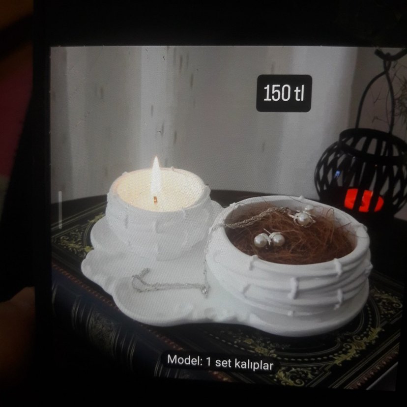 Beyaz mum ve sade tasarımlı ikili mumluk seti. İçinde yanan mum ve küçük eşyalar için tutucu bulunur. Fiyatı 150 TL. ️