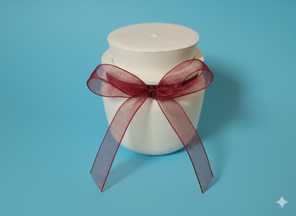 Beyaz mumluk üzerine bağlanmış bordo renkli kurdele ile süslenmiş dekoratif ürün.çoklu alımlarda indirim yapılır.Dügün nişan hediyeligi hazırlanır.