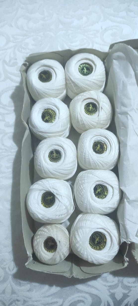 Çeşitli el işi projeleri için düzenli şekilde paketlenmiş beyaz nakış iplikleri seti.